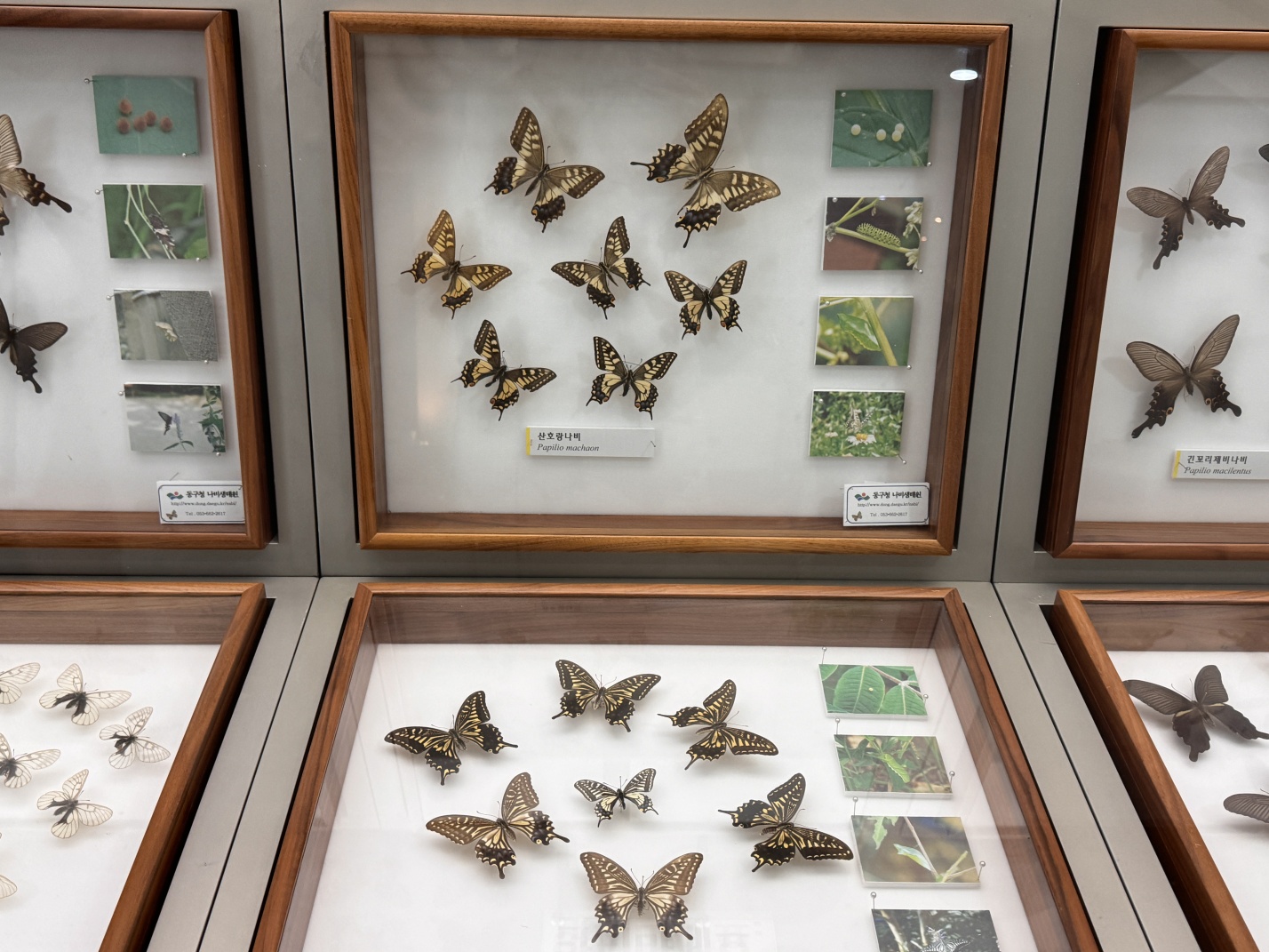 3월의 봄날, 온 가족이 나비생태원에 나들이를 했습니다. 3살 아기부터 90대 증조할아버지까지 총출동하였습니다.아뿔싸! 주차장이 넓기는 하였지만, 할아버지가 걸어서 가기엔 다소 먼 거리였어요. 봉무공원에 와 보셨지만 생태관은 들른 적이 없으신 할아버지는 다리가 아파 중도포기하고 중간에서 휴식을 취하셨습니다.생태관에서 즐거워하는 아기와 나비들을 함께 보면 더 좋았을 텐데... 휠체어를 준비했었어야 했네요. 교통약자를 위한 배려가 없어서 못내 아쉬웠습니다. 생태관 안에는 정말 다양한 나비표본과 곤충표본이 전시되어 있었고 풍부한 배경지식까지 잘 설명되어 있었어요. 나비의 종류가 이렇게 많다니! 석주명이 저절로 떠올랐습니다. 뭐니 뭐니 해도 제눈에는 호랑나비가 제일 예뻤어요. 현재의 곤충산업을 볼 수 있는..